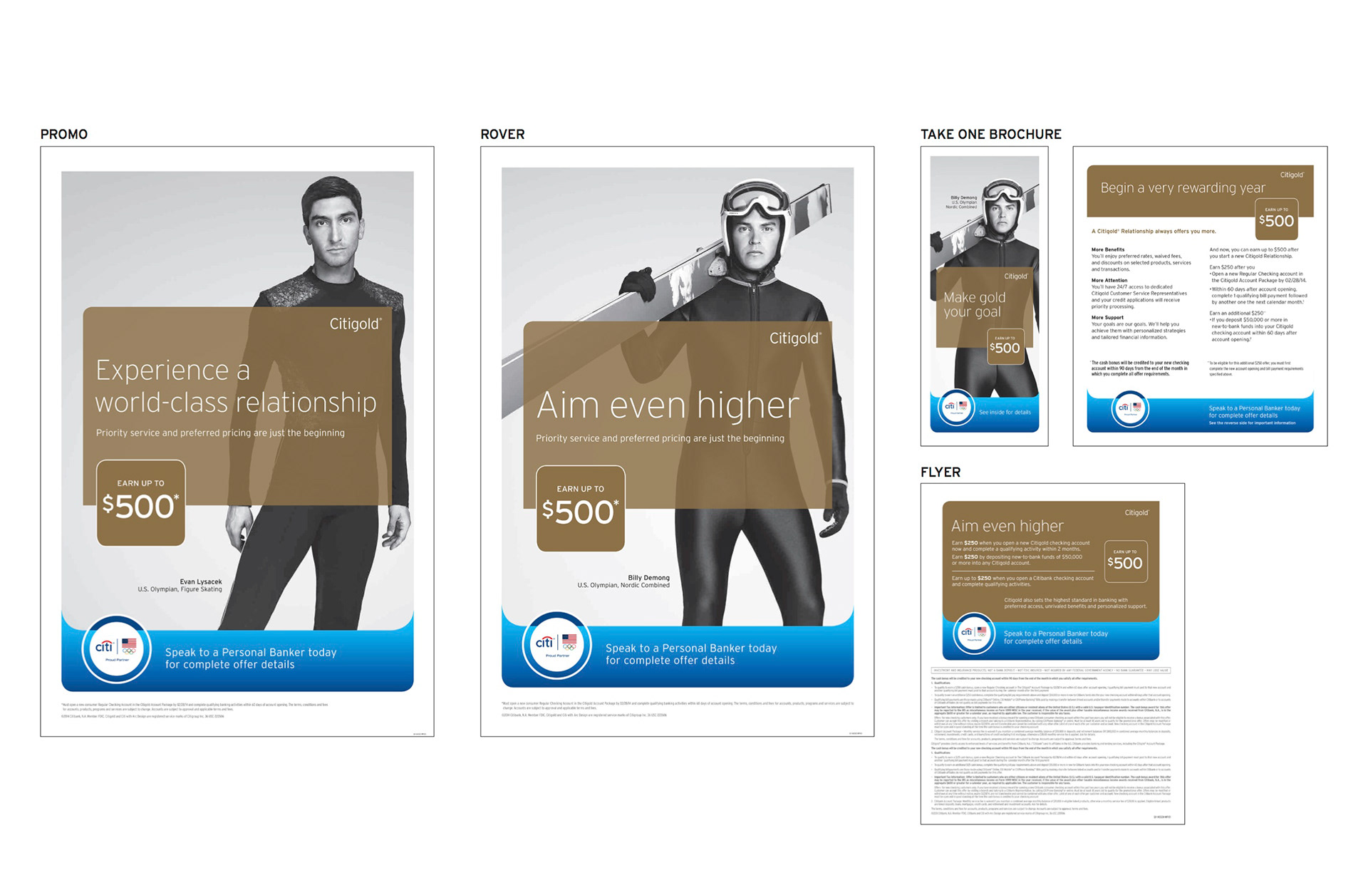 Citibank is literally seeking more gold this winter by teaming up with the Winter Olympics. There was a ton of legal branding issues when creating this campaign we had to deal with however we made it to the finish line. For example, I actually had the line "Olympic Sized Goals Start Here" however we couldn't use the word Olympic. Who knew. Anyway, had a great team working on this and ended up with a winning campaign.